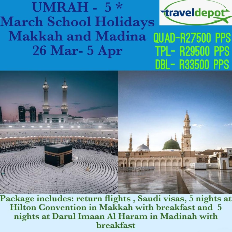 A 5 night stay in Madinah at Darul Imaan al Haram with breakfast